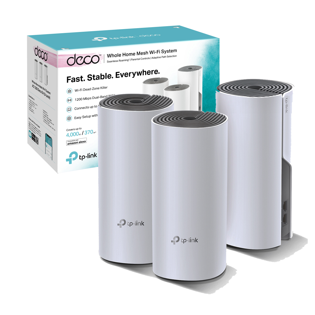 Deco E4 es la forma más sencilla de garantizar una fuerte señal Wi-Fi en cada esquina de tu hogar hasta 260 metros cuadrados (paquete de 2). Las conexiones inalámbricas y la red de respaldo Ethernet opcional trabajan juntas para vincular las unidades Deco, proporcionando velocidades de red aún más rápidas y una cobertura verdaderamente perfecta.